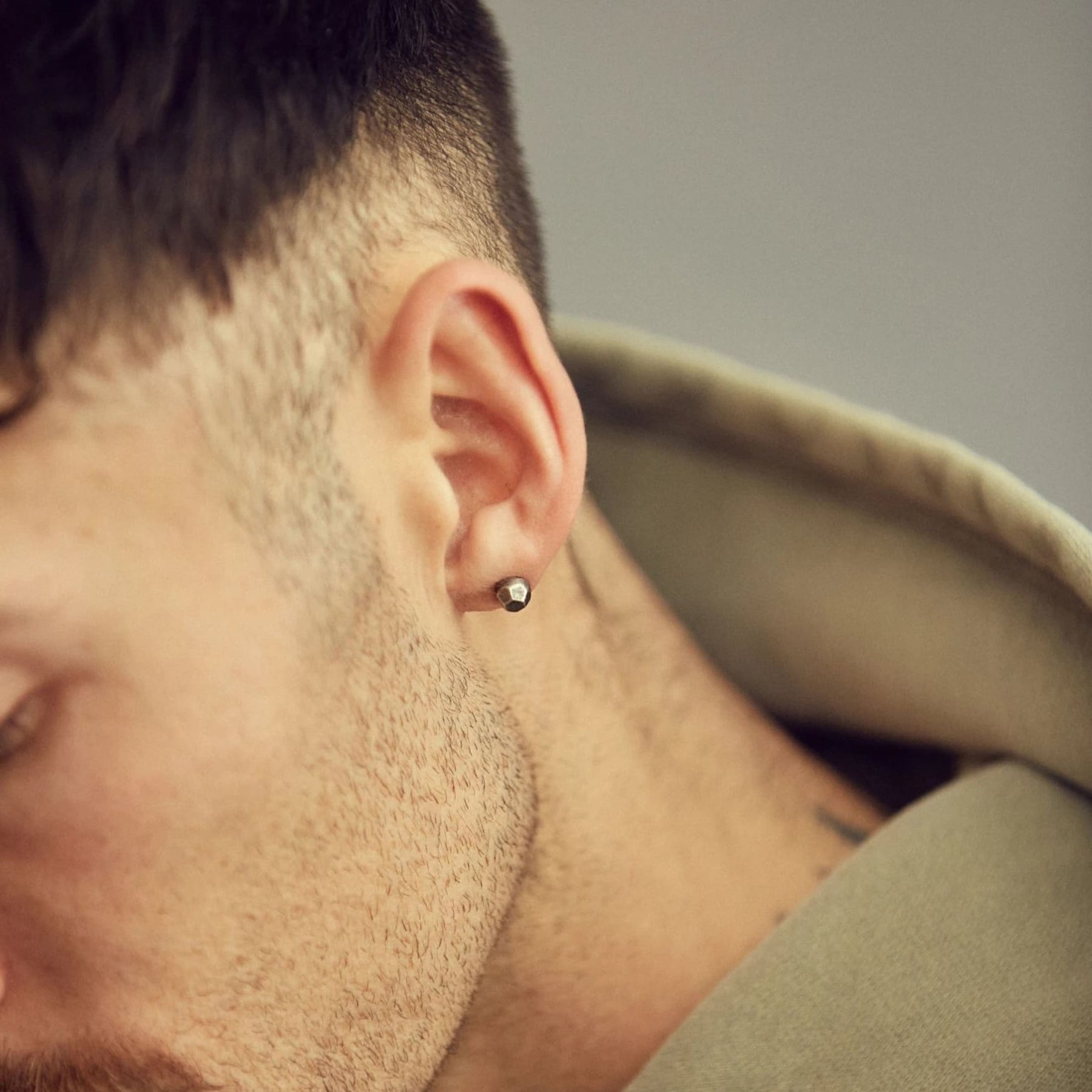 • Geometric solid metal stud earrings.